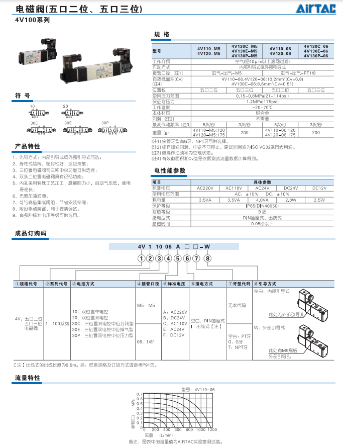 電磁閥(五口二位,三位)4V100系列