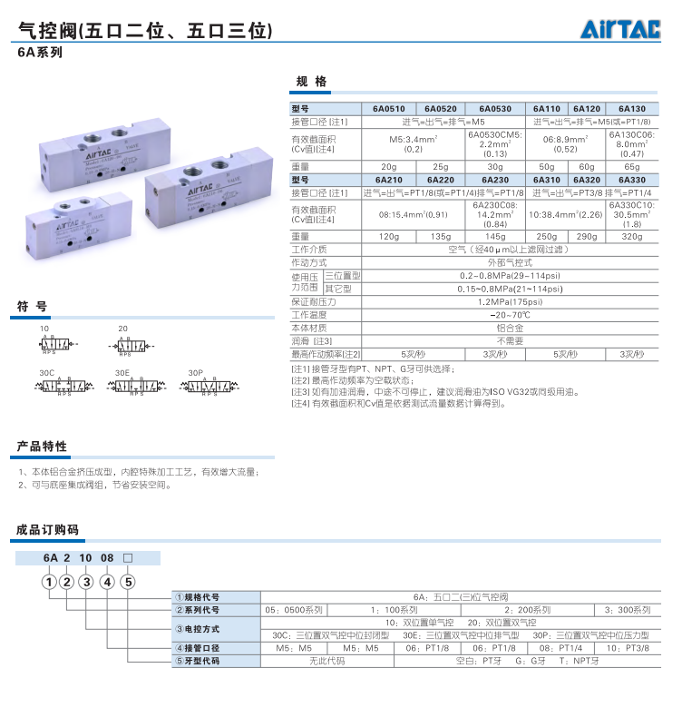 氣控閥(五口二位,三位)6A系列
