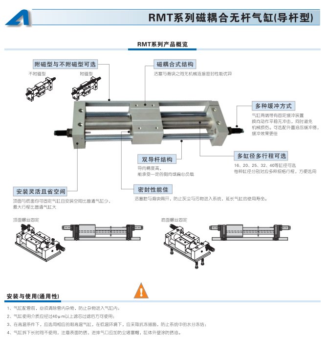 RMT系列磁耦合無桿氣缸(導桿型)